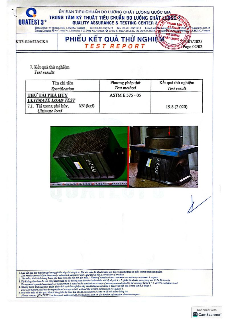 Kết quả thử nghiệm Van góc liên hợp 25mm x 3/4