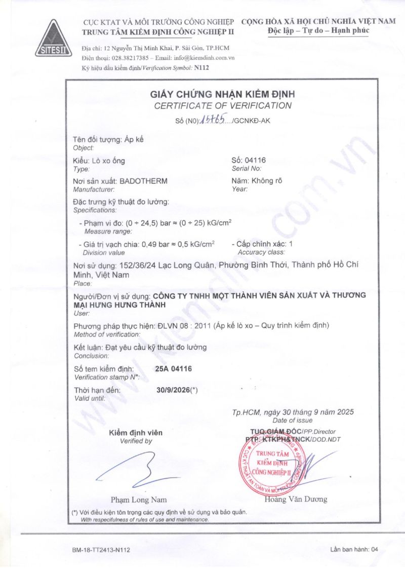 Kết quả thử nghiệm Van góc 25mm x 3/4