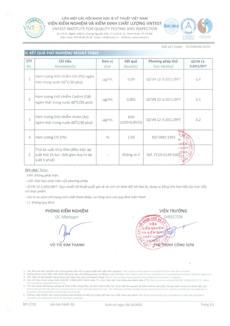 Kết quả thử nghiệm Hộp bảo vệ đồng hồ