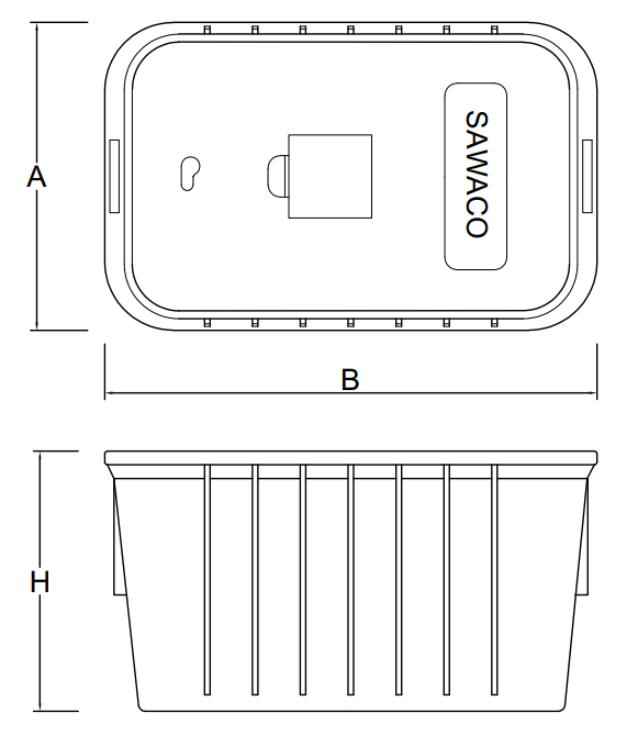 - Nắp có thiết kế chống trơn trượt , có gân chịu lực đảm bảo độ cứng vững, ngoài ra phải đảm bảo thay thế được dễ dàng, trên nắp có khắc chữ nổi SAWACO rõ ràng không phai