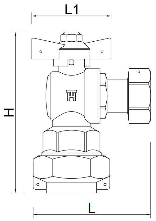 - Van góc liên hợp gồm thân van, bộ nối nhanh, trục van và bi cầu van
