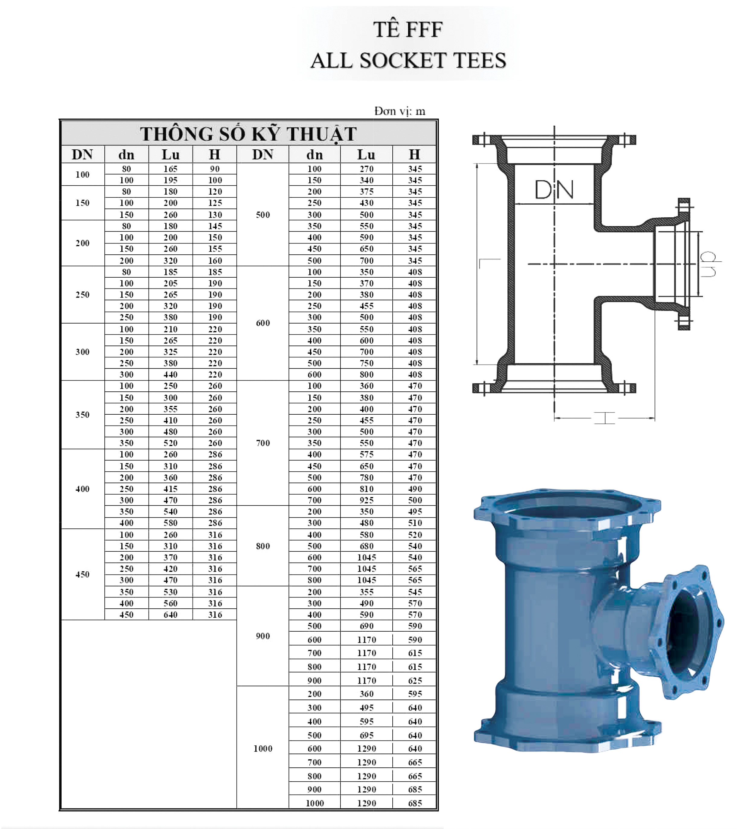 Tê FFF là phụ kiện nối ống hình chữ T, loại tê này chuyên dùng để chia hoặc gom dòng chảy tại các điểm giao nhau của hệ thống đường ống.
